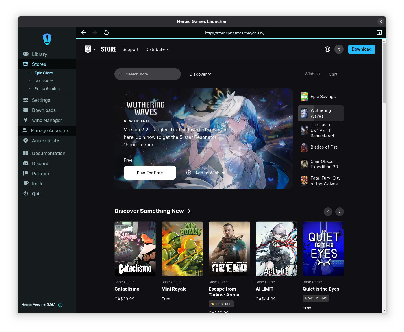 The Heroic launcher provides access to the GOG store, Epic Games store, and Prime Gaming store. Heroic also makes things very easy to run your games from the supported stores. You do have to have some extra knowledge of the Linux gaming the ecosystem, like knowing what Wine and Proton are, and manage versions of these programs. Heroic also exposes some advanced settings for the Proton compatibility layer. Managing the settings and the versions of the Proton compatibility layer are all integrated into the launcher. Heroic is a great middle ground between Steam and the next launcher Lutris.